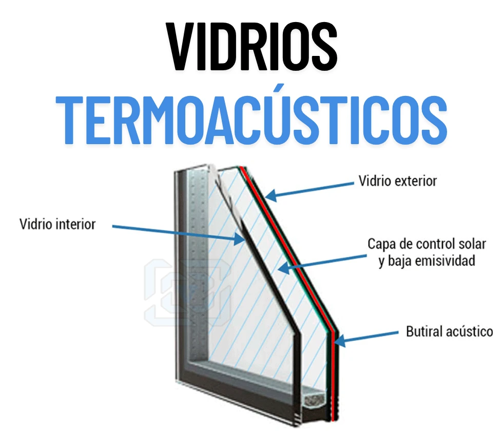 El vidrio termoacústico es un sistema de acristalamiento compuesto por dos o más capas de vidrio unidas mediante una lámina especial (PVB o cámara de aire) que reduce el paso del ruido y minimiza la pérdida de calor o frío en los espacios.